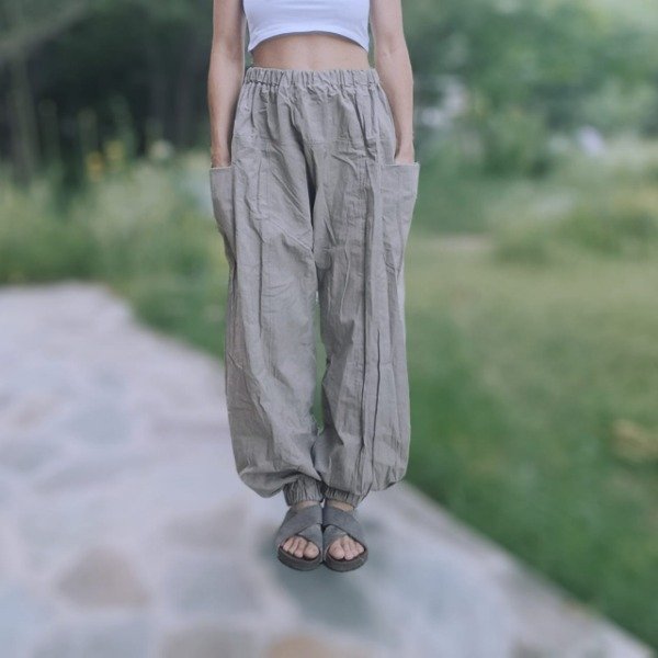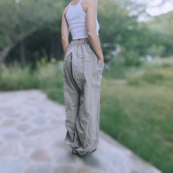 Pantalon abuchonado con elastico en la cintura y botamanga.