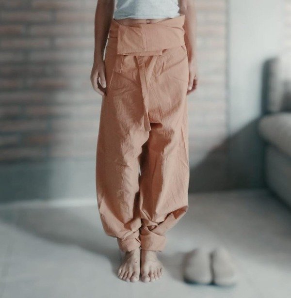 Es originario de Tailandia. Era una prenda utilizada por antiguos pescadores tailandeses, por lo cómodos y flexibles que resultaban para desempeñar su oficio.