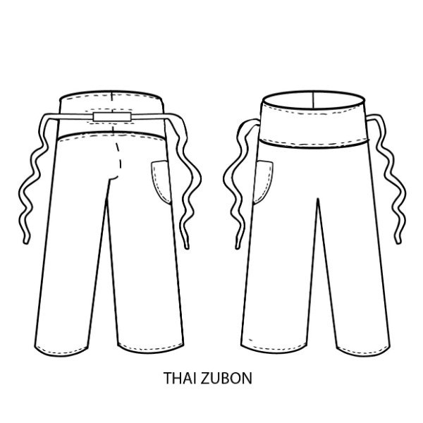 Es la fusión del pantalón thai tradicional, y el pantalón de entrenamiento en artes marciales de Japón.