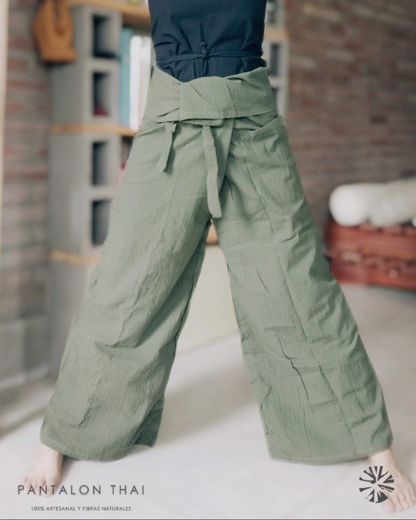 Tiene tiro de pantalón convencional, y a la vez se pliega y se ata como el pantalón thai.